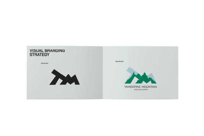 Design Approach: At the heart of the identity is a stylised monogram that seamlessly blends the letters “T” and “M” into a geometric mountain range. The design features sharp, confident peaks to reflect the adventurous character of Tamborine Mountain, while maintaining a balanced and contemporary layout.